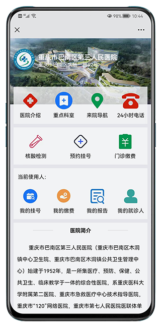 預約掛號 + 門診/住院繳費 + 報告查詢